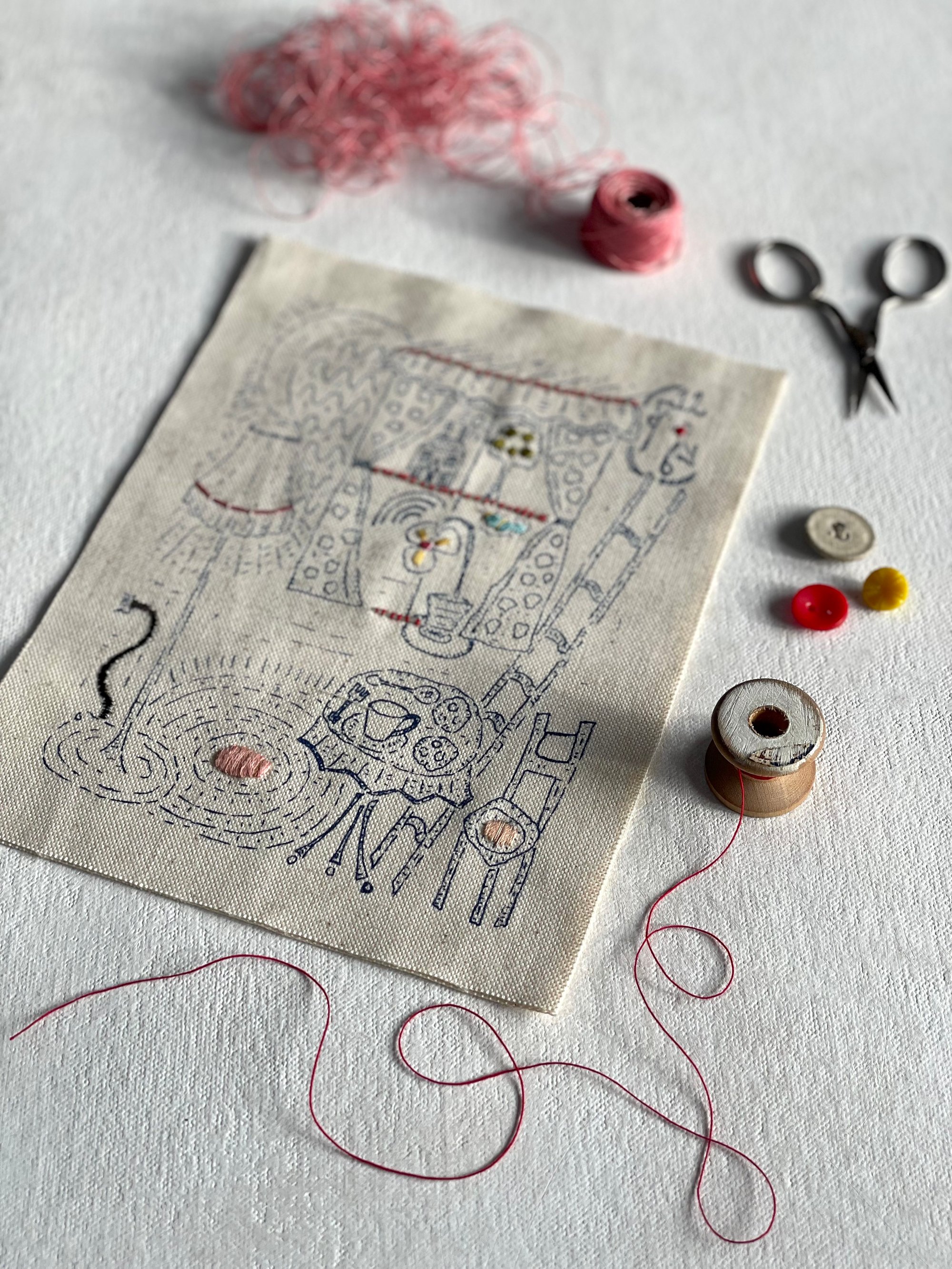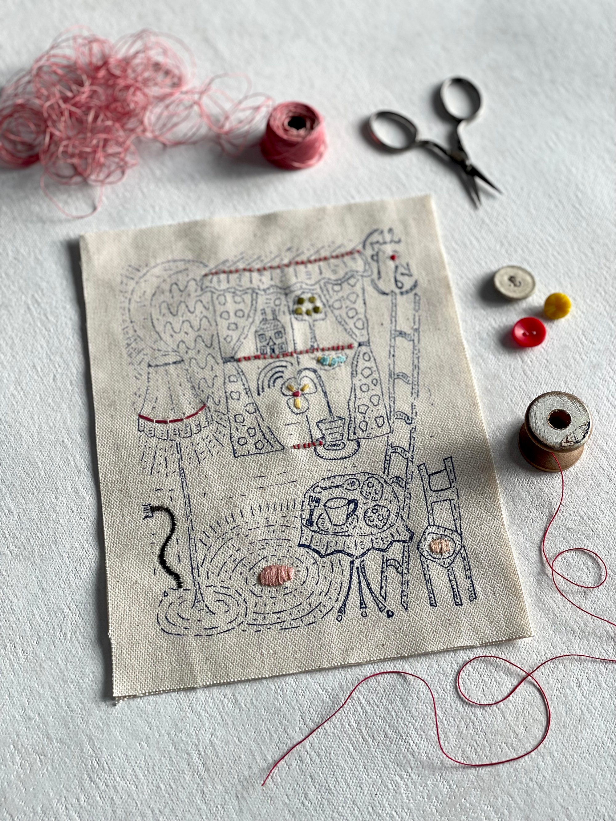 This design is a celebration of two of my favourite techniques – hand stitching and fine needle-turned appliqué. I hope that you too can find joy in the process of slow stitching and making marks with your needles, threads and fabrics to create your own unique stitched story.