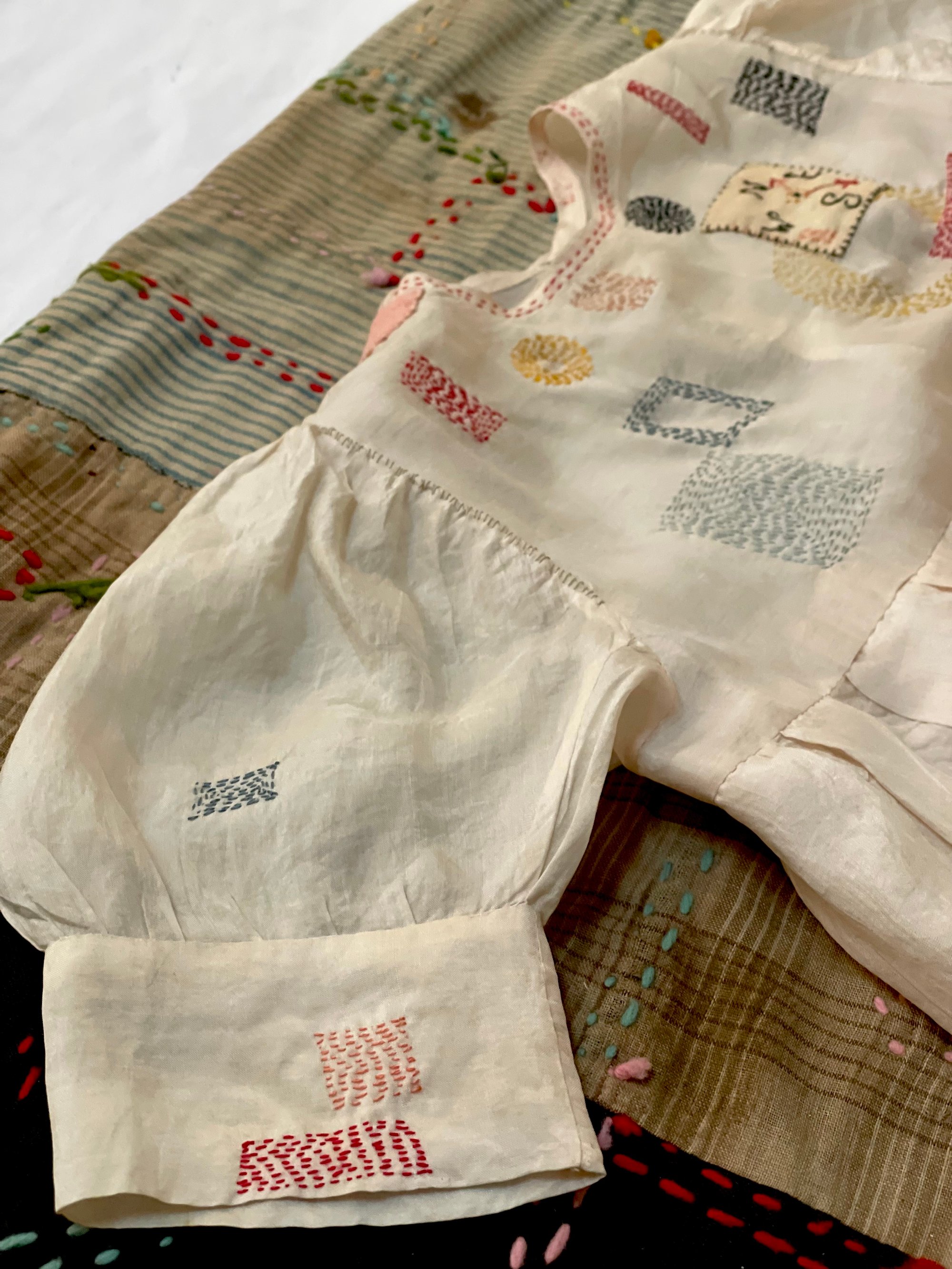 Embroidered silk story dress.